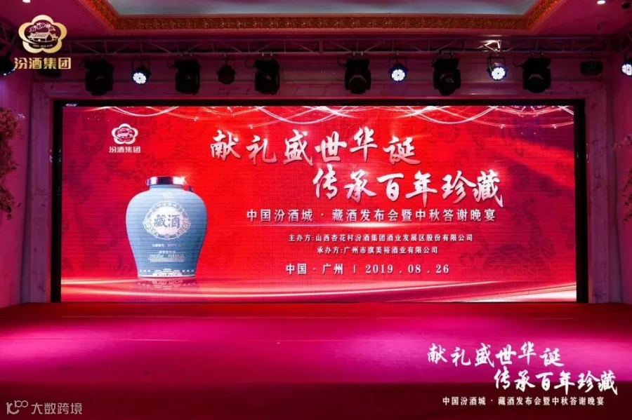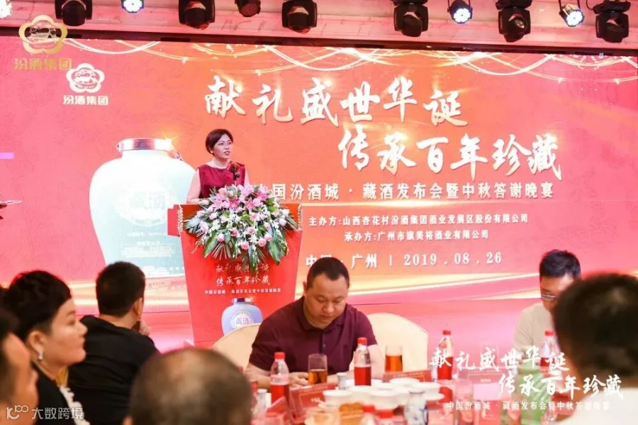 经过一系列的紧张筹备,2019年8月26日晚,由山西杏花村汾酒集团酒业发展区股份有限公司与广州市旗美裕酒业有限公司共同举办的“献礼盛世华诞 传承百年珍藏”中国汾酒城·藏酒发布会暨中秋答谢晚宴于广州市粤大国际金融城酒店隆重举办!