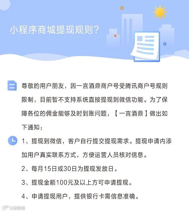 一言酒鼎酒业小程序商城提现说明