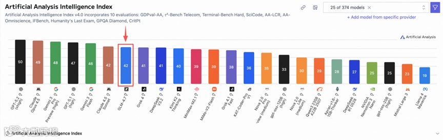 高强度的研发投入,为智谱技术快速迭代及性能提升打下了基础。据悉,GLM系列模型每2~3个月完成一次基座迭代,保持全球领先水平。以2025年12月智谱发布的新一代基座模型GLM-4.7为例,其在模型综合能力榜单Artificial Analysis登顶全球开源模型与国产模型双料榜首,达到国际领先水平。