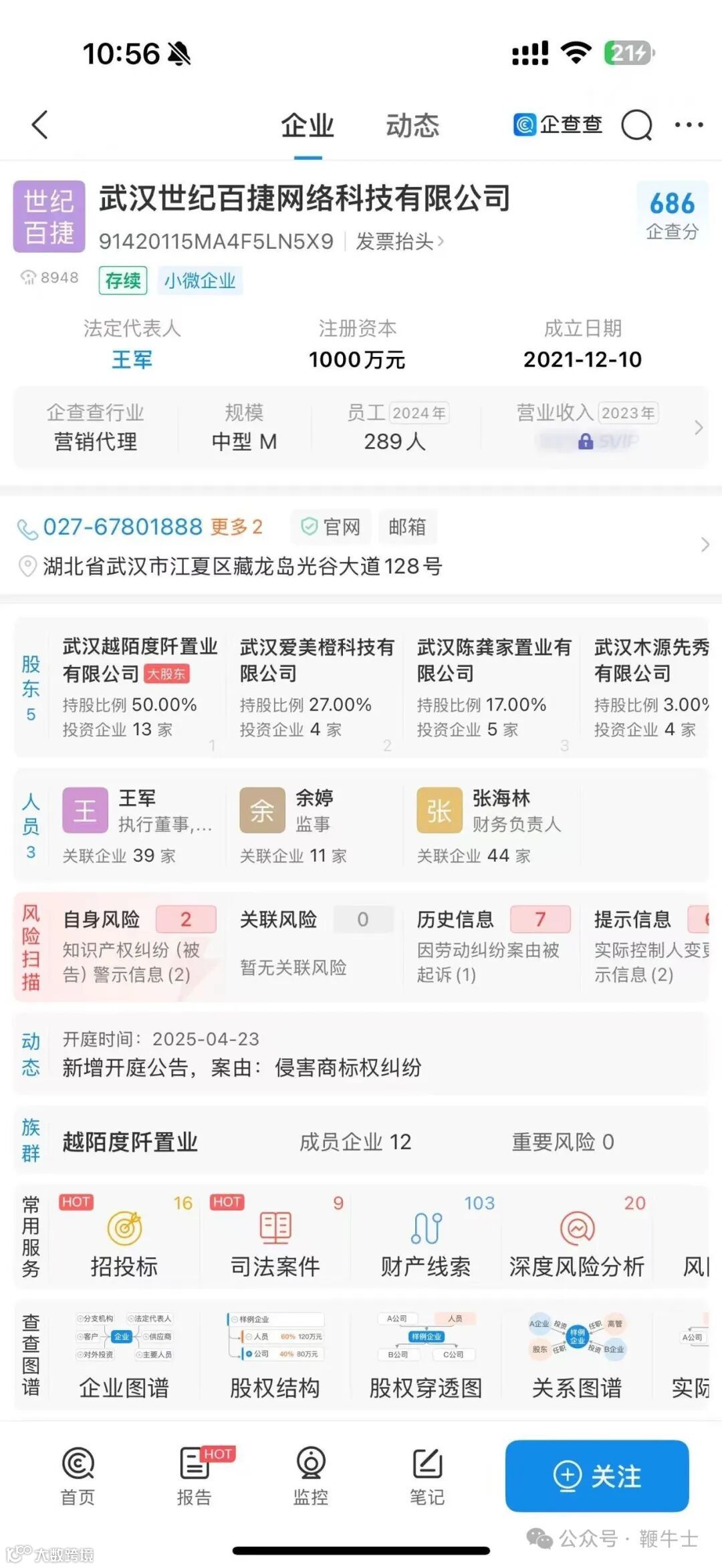 据新识研究所分析,百度湖北地区的代理权已部分分给湖北度今科技有限公司和湖北嘉衡智赢网络科技有限公司,这两家公司与世纪百捷在湖北的分公司有关联,老板也是分公司的股东。