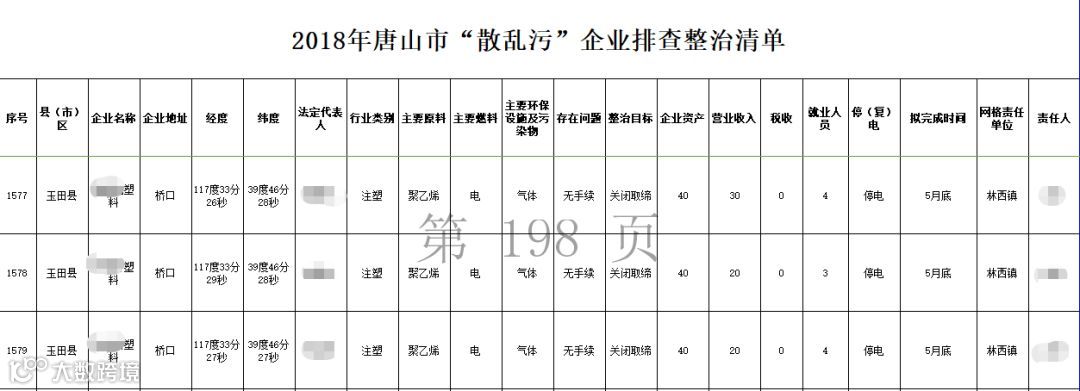 2018年唐山市“散乱污”企业排查整治清单部分截图