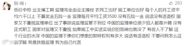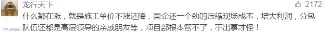 部分项目由于管理费提取比例过高,导致了分包单位在实际施工中,不得不使用低价劣质的材料来保证自己不亏本,例如沪昆事件中曝光的槽道。很多时候成本就是质量,因为没有哪一家施工单位会亏本来施工的。