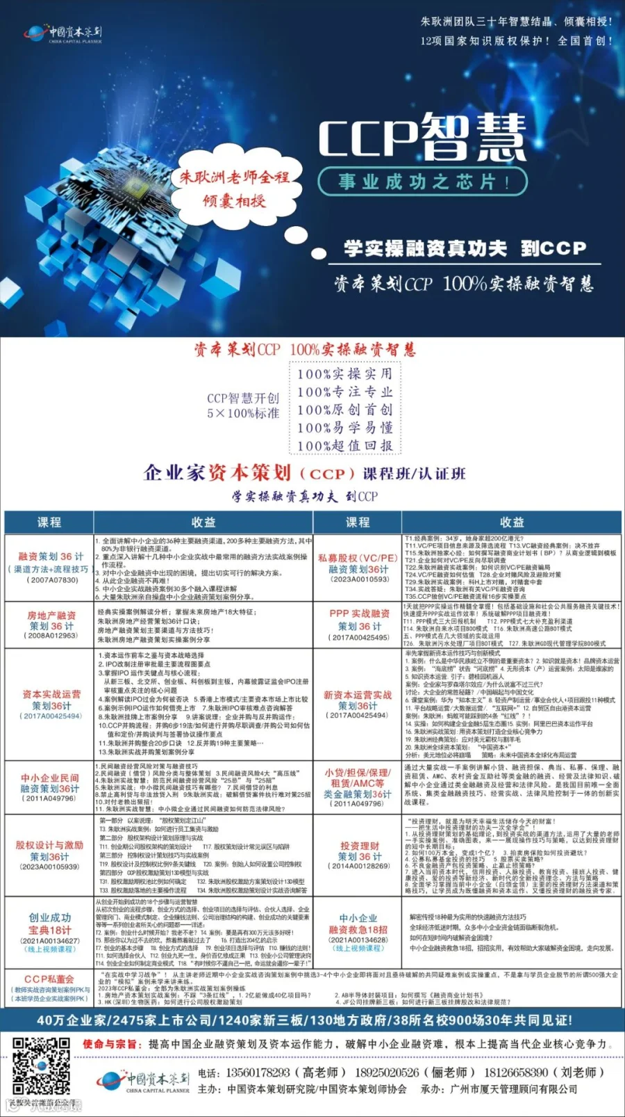 朱耿洲有关VC/PE融资咨询解答(5): CCP(资本策划师)和FA(财务顾问)在VC/PE融资中有什么作用? 企业家与资本策划