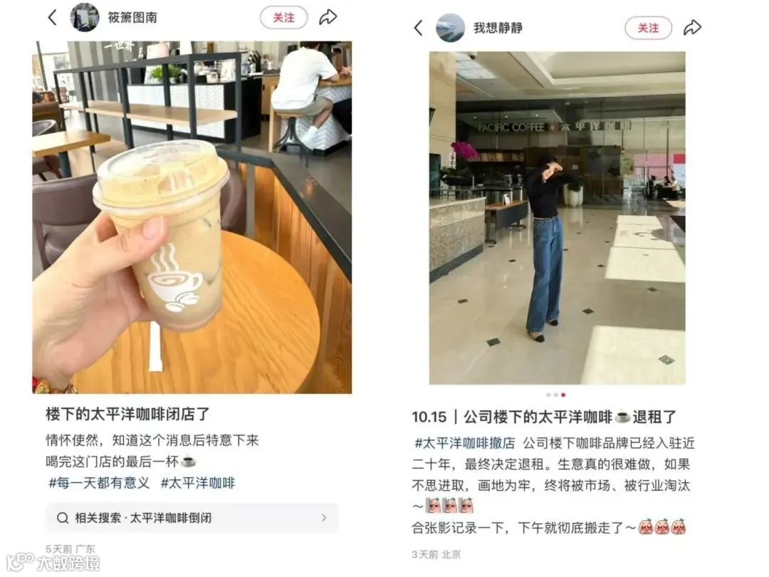 各地网友也都在社交媒体发帖称,身边的太平洋咖啡纷纷关店。