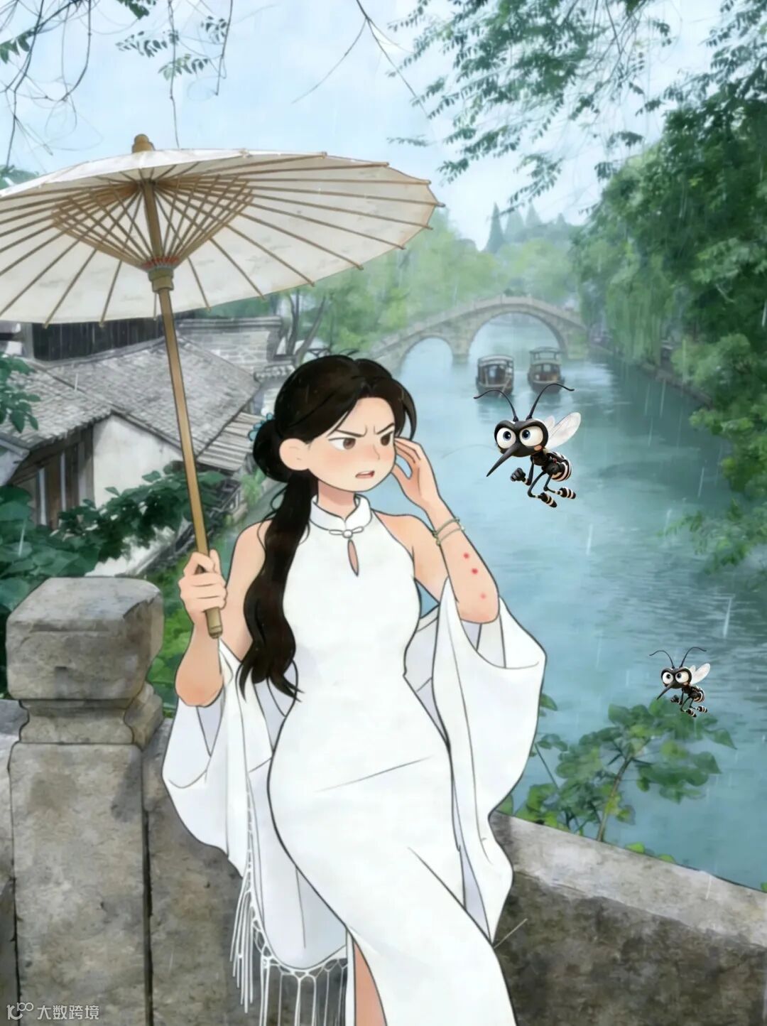 当你穿着旗袍撑着油纸伞漫步在桥上,本想拍一组“人在画中游”,结果美照变“蚊子包九宫格”;