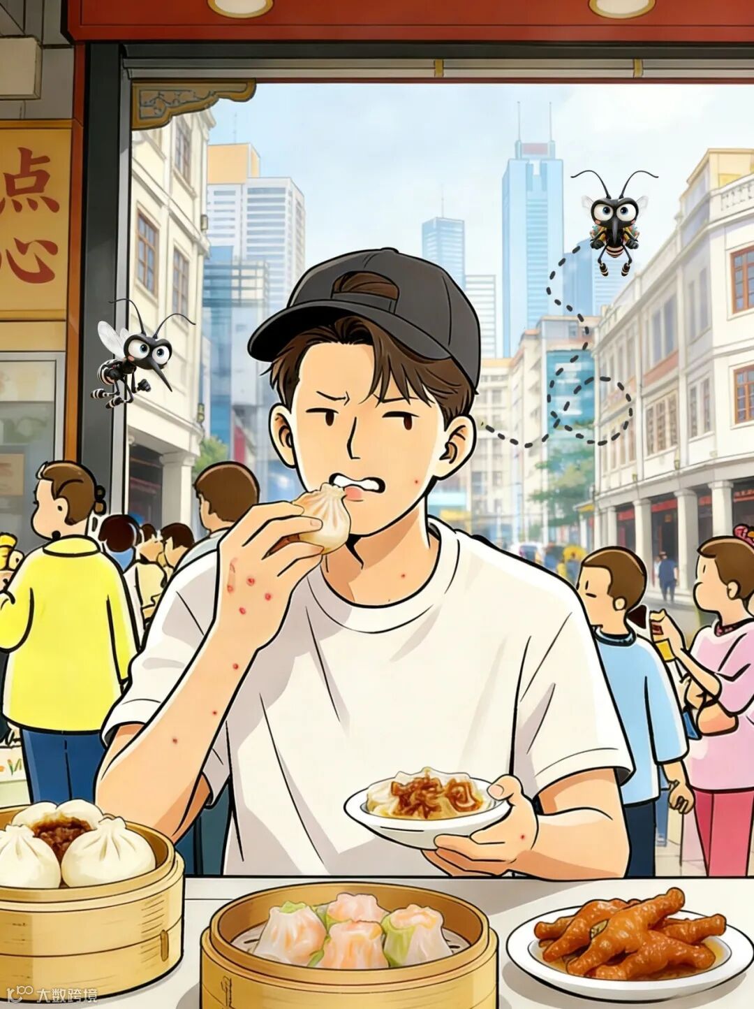 当你在网红早茶店排队打卡半个钟,喜提“红包”7、8个。你吃早茶,蚊子吃你,两不误~