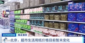 在北京的一家超市,工作人员告诉记者,今天所有生活用纸的价签都没有发生变化,价格没有发生变动。