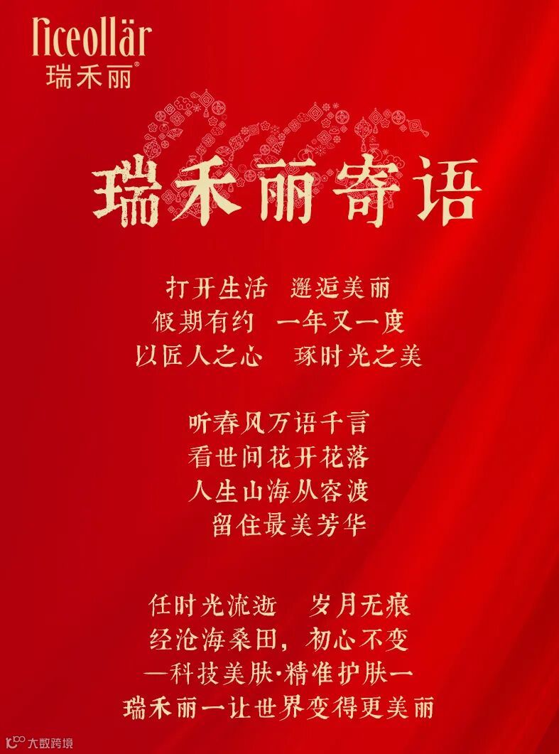 除夕已至,新年来到,我们要将美好的祝福传送,祝福我们的家人和朋友们:新年快乐,蛇年大吉!生活顺意,日子和美。同样感谢“瑞禾丽”的粉丝们:感恩遇见,感谢有你。新的一年,还要一起!