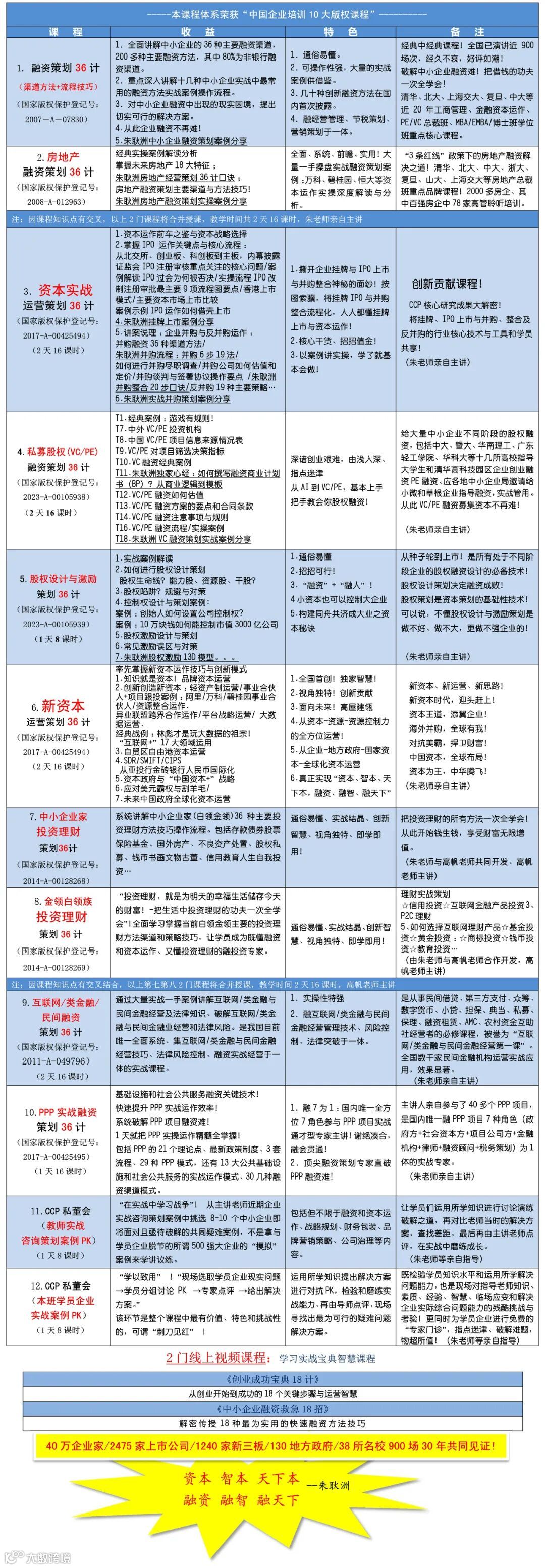 全国首创!并共获20项国家版权保护,首创“资本策划”概念、知识体系、课程及“资本策划师”资质认证,并培养出中国第一批“资本策划师”!
