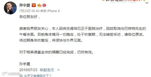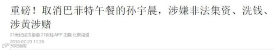 然而,就在几天后,孙宇晨突然在微博发声明以生病为由“取消”这场午宴。随后更是陷入“洗钱”、涉嫌非法集资、涉黄涉赌等旋涡里。