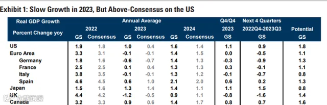 高盛预测,2023年经济增速与今年大致相同,目前对2023年的预测远高于预期共识。