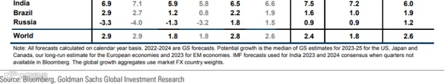 高盛指出,这些国家经济具有一定弹性,部分地区的通胀率正在下降,特别是巴西。但中东欧仍面临大宗商品价格上涨、高通胀和货币紧缩持续的风险。