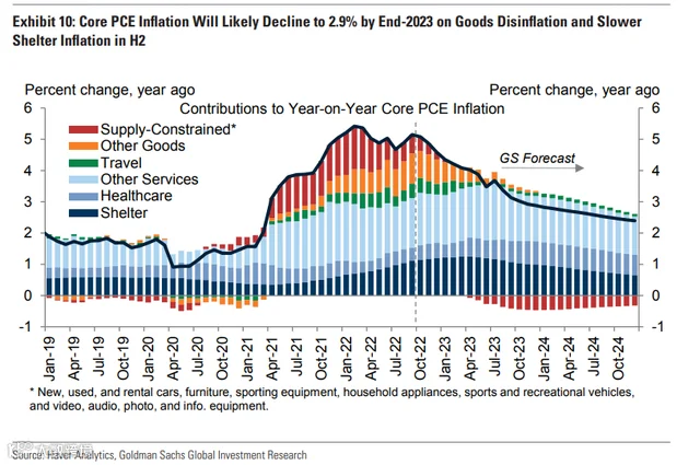 高盛相当乐观,其预计美联储能在失业率仅增长0.5个百分点的情况下,将明年核心PCE降低2%。