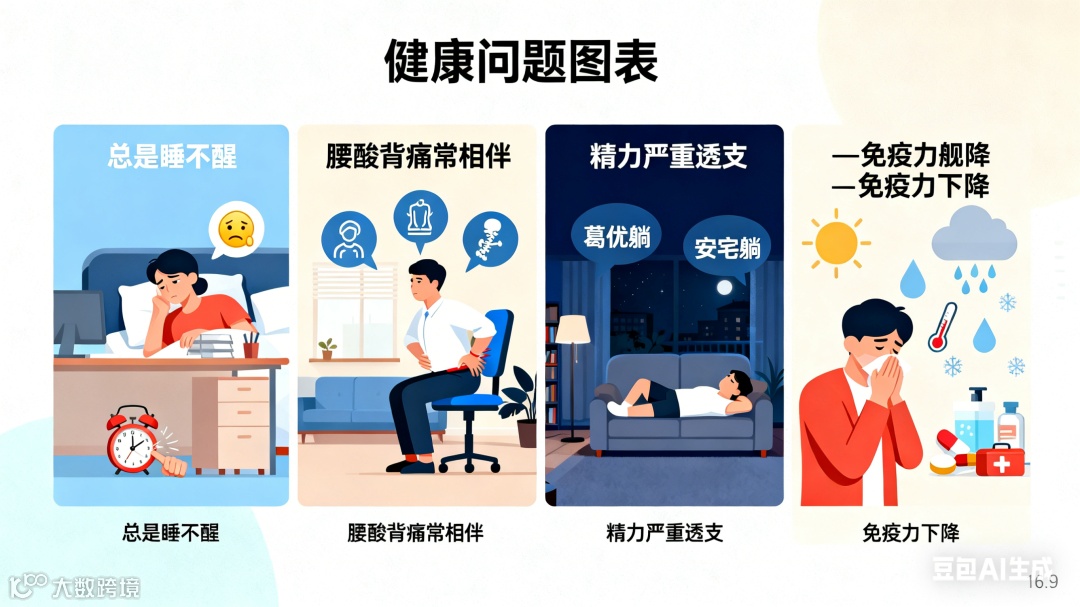 精力严重透支:下班回家只想“葛优躺”,对什么都提不起兴趣,连夫妻亲密都力不从心。