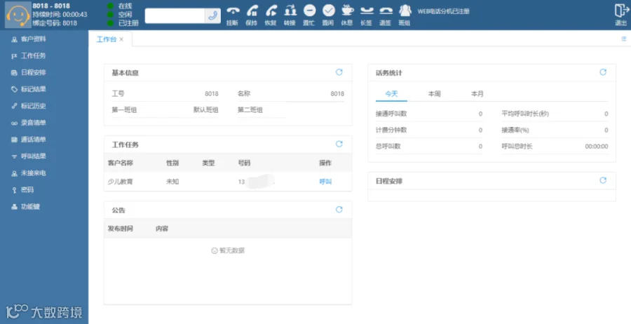 2、营销外呼:针对营销外呼提供客户管理、呼叫管理、报表等功能;