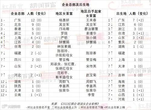 从出生地来看,粤商再次成为第一,有7位,比去年多2位;苏商第二,比去年减少1位至5位;浙商第三(公众号:朱耿洲CCP),比去年增加1位至4位。白手起家的女企业家中,粤商和苏商最多。