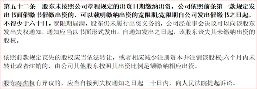 第三、明确了不履行出资义务股东失权的决议程序和失权股东的异议程序等内容。比如按照新《公司法》第52条。