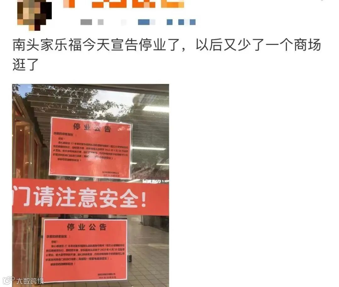 因经营不善,深圳第一家、中国第二家家乐福门店,于6月10日起停止营业。这家位于南山南头片区的老店,已陪伴深圳人整整27年。