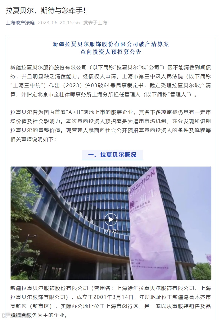 公司官网显示,拉夏贝尔成立于1998年,是一家定位于大众消费市场的多品牌、全渠道运营的时装集团。 -