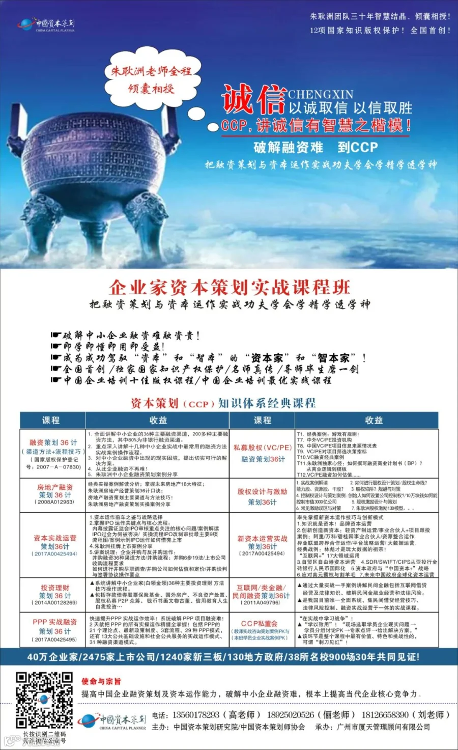 (本期是中国资本策划研究院“融资策划36计”全国大巡讲总第871场次)