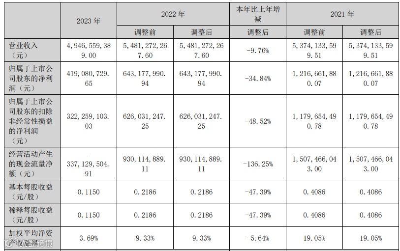 2023年中核钛白营收49.47亿元,较上一年同比下降9.76%;归母净利润4.19亿元,同比下降34.84%;扣非净利润3.32亿元,同比下降48.52%。其中,公司2023年约有87%、43.14亿元收入的来自钛白粉业务。