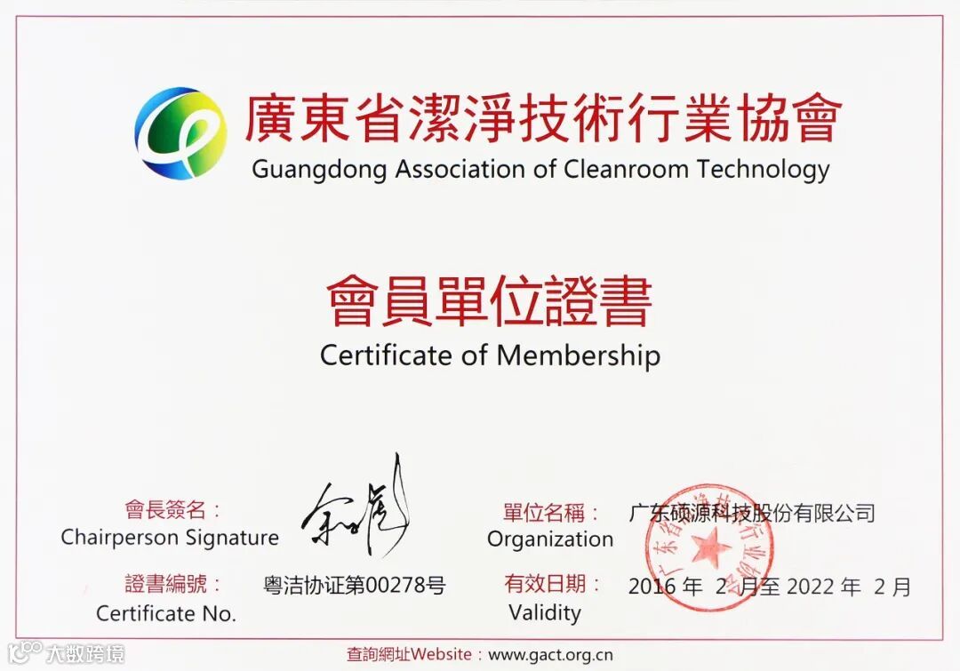 在此特别感谢广东省洁净技术行业协会对硕源科技工作的肯定与支持,硕源科技将承载荣誉、砥砺前行,继续为洁净技术领域的发展作出自己的贡献!