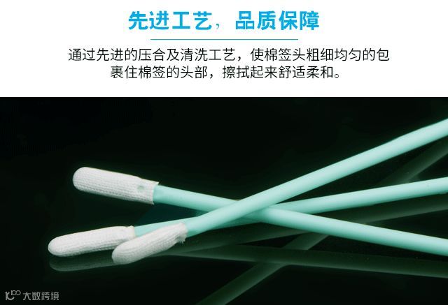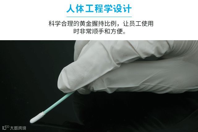 它不仅通过10级洗烘中心和10级棉签车间进行洗烘和加工,品质非常稳定,同时70mm无尘布棉签独特的压合工艺,让它的吸收、耐磨性能更加优秀,可满足客户多样化需求。