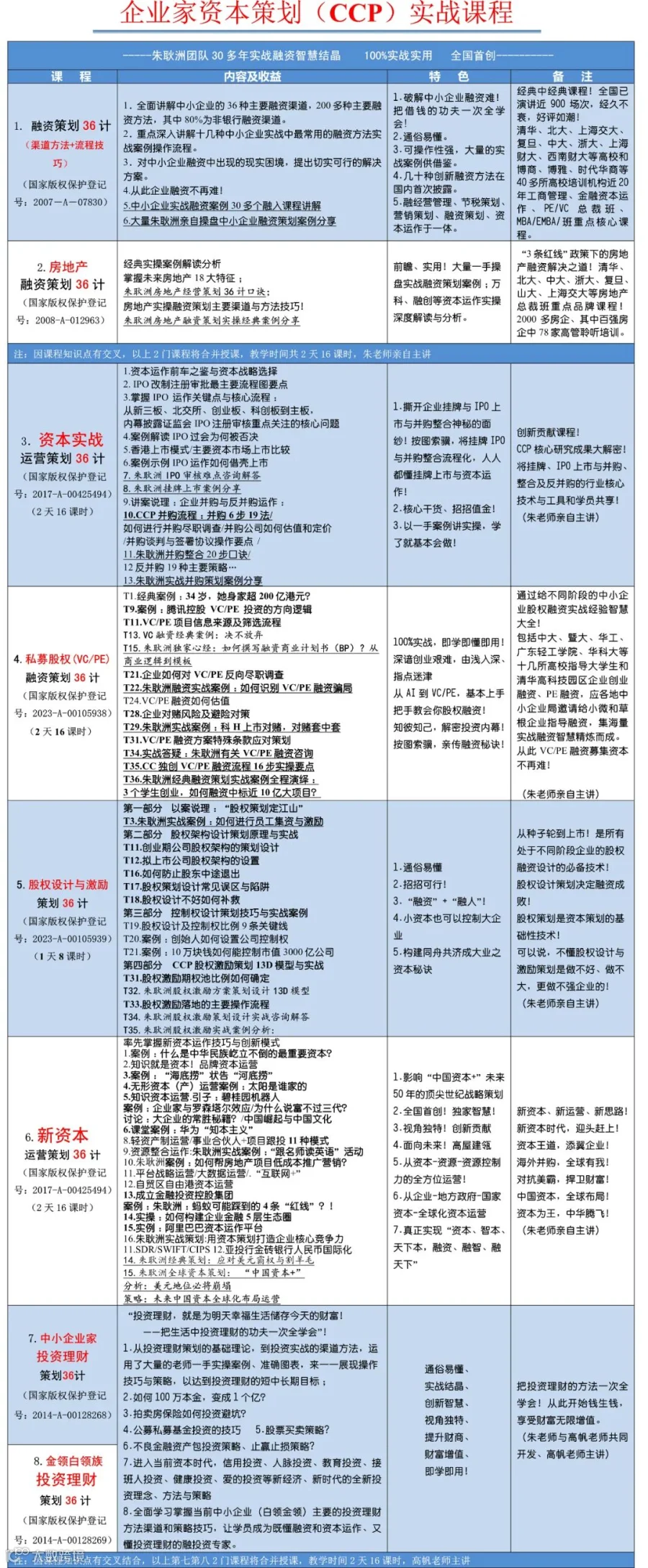 2.认证班:符合条件可申请报读“企业资本策划师(CCP)”认证班,学习费用58800元/人,与课程班合并授课。