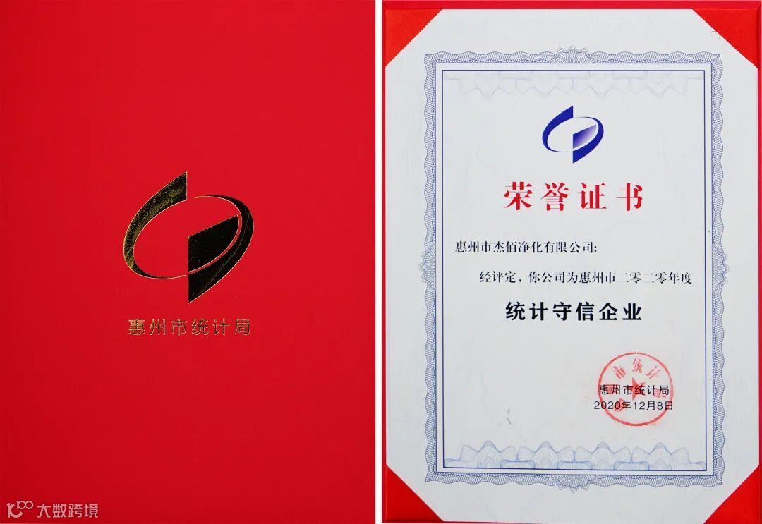 更光荣的是,在活动现场,惠州市杰佰净化有限公司被评定为2020年度统计守信企业!真是可喜可贺!