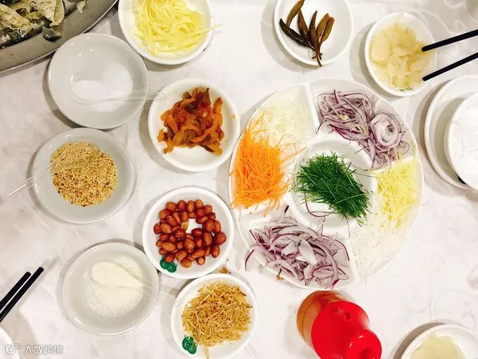 用胡萝卜丝、洋葱、柠檬叶、葱丝