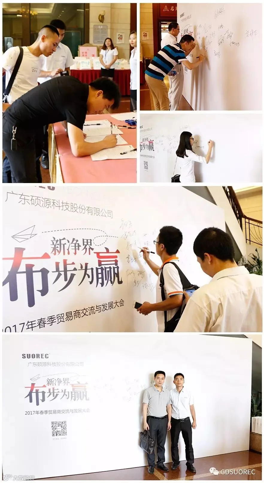 2017年5月23日,广东硕源科技股份有限公司春季贸易商交流与发展大会在东莞石龙名冠金凯悦大酒店隆重召开!会议邀请了近100位优秀的贸易商伙伴,以“新净界·布步为赢”为主题,旨在为贸易商伙伴提供品质稳定、交期迅速的净化耗材产品及清洁设备;并实地考察硕源生产基地,增强伙伴们应对客户时的信心;同时还分享净化耗材方面的专业知识,使伙伴们更专业!