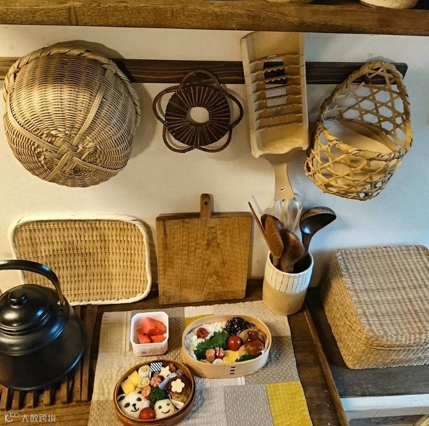 厨房里,有很多手编的竹筐,小巧的菜板和漂亮的菜篮子,这些精美的小物件,并不是买来的,而是爸爸亲手做的。