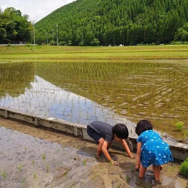 或者,在爸爸妈妈的指导下,光着脚丫在稻田里插秧。