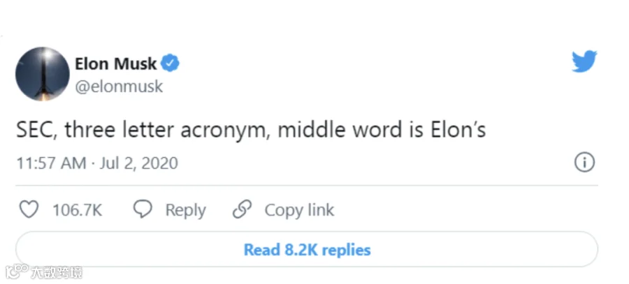 但是,推特也给他带来了麻烦。2018年一篇关于特斯拉股票的帖子引发了美国证券交易委员会(SEC)的调查,当时SEC指控马斯克向投资者发表了“虚假和误导性”的言论。最后,双方达成和解协议。