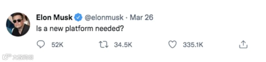 3月26日,爱发推特的马斯克连发数条推文,表达对推特的不满,诸如“推特消亡了吗?”、“你们需要一个新的社交平台吗?”、“推特没有言论自由了,应该如何修正?”此类的灵魂拷问(公众号:朱耿洲CCP),一时间引起推友们的热议,也有网友调侃道,你应该买下推特。
