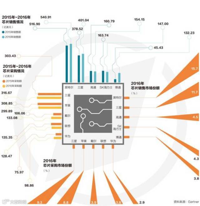今年以来,芯片巨头的收购烽烟再起。今年3月,英特尔以153亿美元收购了以色列信息技术公司Mobileye。5月26日,高通联合大唐电信旗下联芯科技,以及建广资本和智路资本,成立合资公司瓴盛科技(JLQTechnology),进军手机芯片低端市场,从而抗衡有英特尔入股的紫光旗下的展讯和锐迪科。早在今年2月,建广资本就已经完成了27.5亿美元收购恩智浦标准件业务。