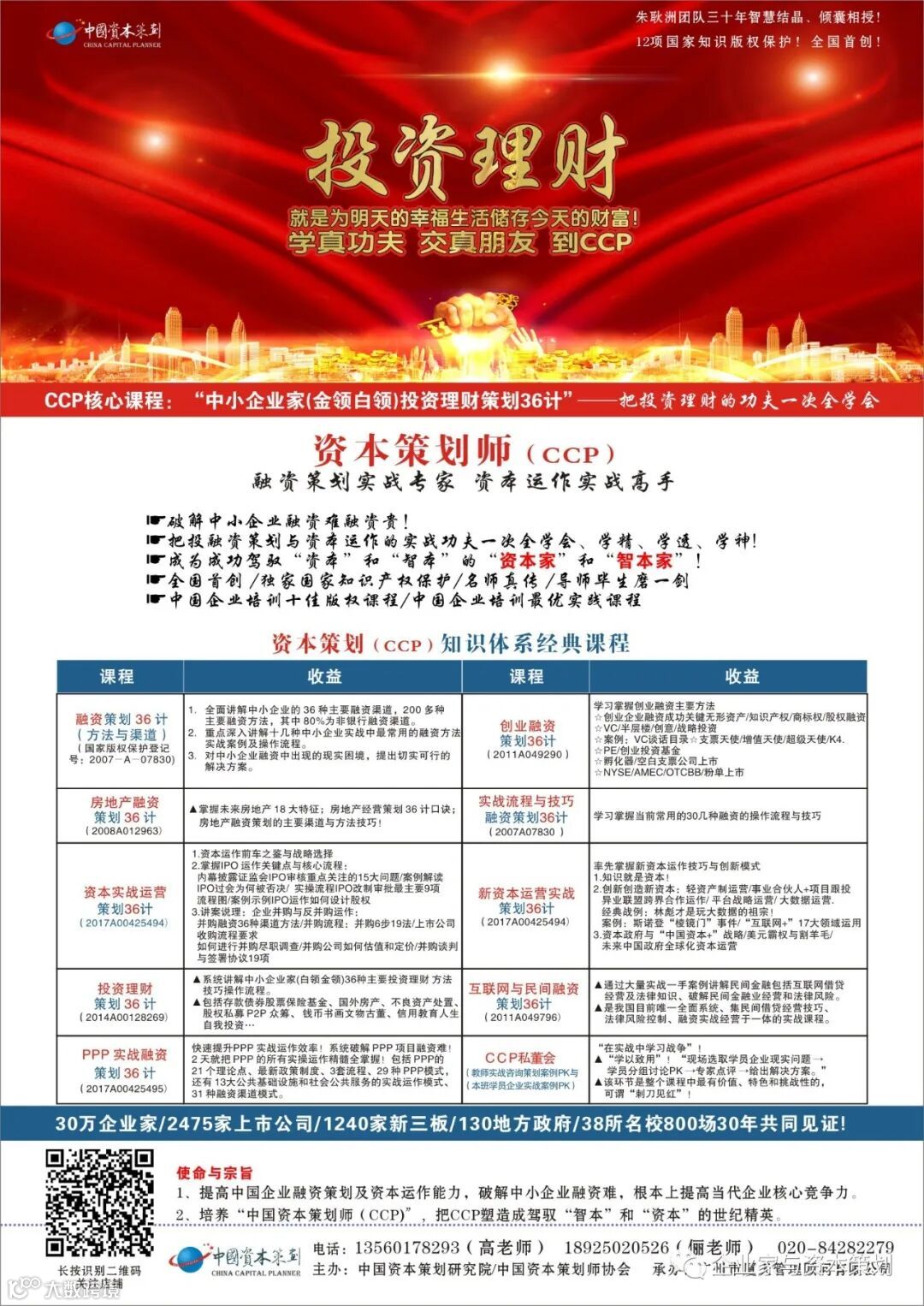 为了使这些企业金融资本班学员继续深入学习资本策划(简称CCP),提升融资与资本运作知识,也为了给这些学员再造一个相互认识、相互整合、共同进步的更加广阔、自由、便利的学习平台和机遇,朱耿洲老师和中国资本策划研究院一直以来,通过建立多个“朱耿洲资本策划精英荟”等微信互动群,不定期确定一个“朱耿洲CCP论题”,供不同群内学员讨论PK,使大家积极探讨传播融资、资本运作、投资理财、企业管理成败等赚钱做事业正能量话题和知识。目前已进行到第63期。