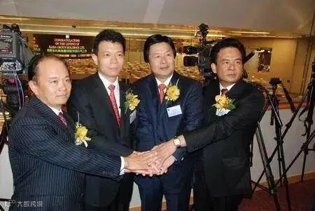 佳兆业集团董事局主席郭英成(左三)与日国际集团主席蔡志明(左一)关系友好,在佳兆业上市之时,蔡志明就参与投资