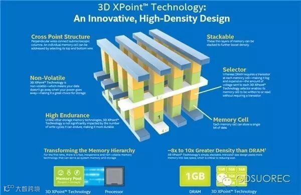 由于还没有上市,而且Intel对3D XPoint闪存口风很严,所以我们无法确定3D XPpoint闪存背后到底是什么,不过比较靠谱的说法是基于PCM相变存储技术,Intel本来就是做存储技术起家的,虽然现在的主业是处理器,但存储技术从来没放松,在PCM相变技术上也研究了20多年了,现在率先取得突破也不是没可能。