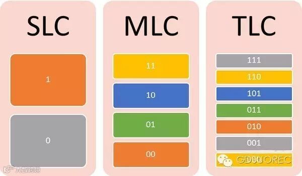 TLC=Trinary-Level Cell,即3bit per cell,该类芯片传输速度较慢,寿命短,生产成本低MLC=Multi-Level Cell,即2bit per cell,该类芯片传输速度一般,寿命一般。至于SLC=Single-Level Cell,即1bit per cell,这类芯片几乎只出现在企业级SSD上,成本较高,当然速度和寿命也是三者中最出色的。