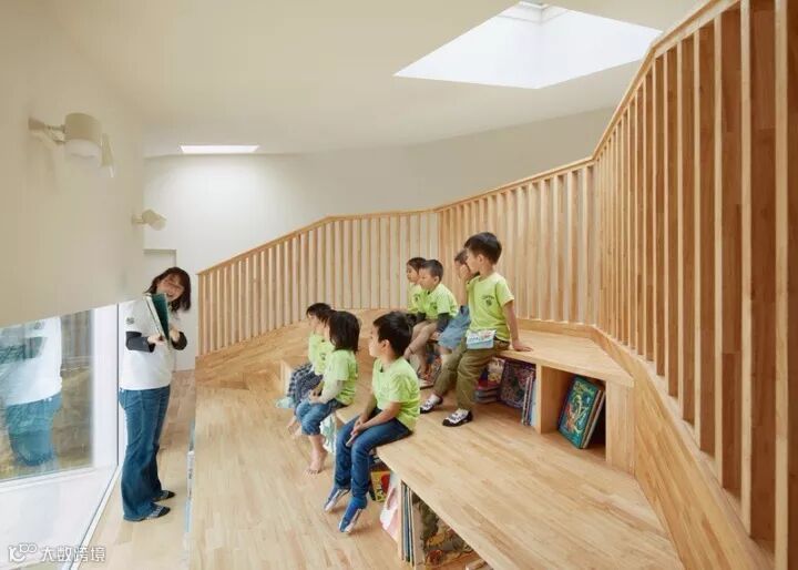 曲面的外壳与内部结构间形成的空隙,则成了孩子们的秘密角落,这只有孩子才能爬到,他们也拥有属于自己的天地。像家中一般快乐、自由。