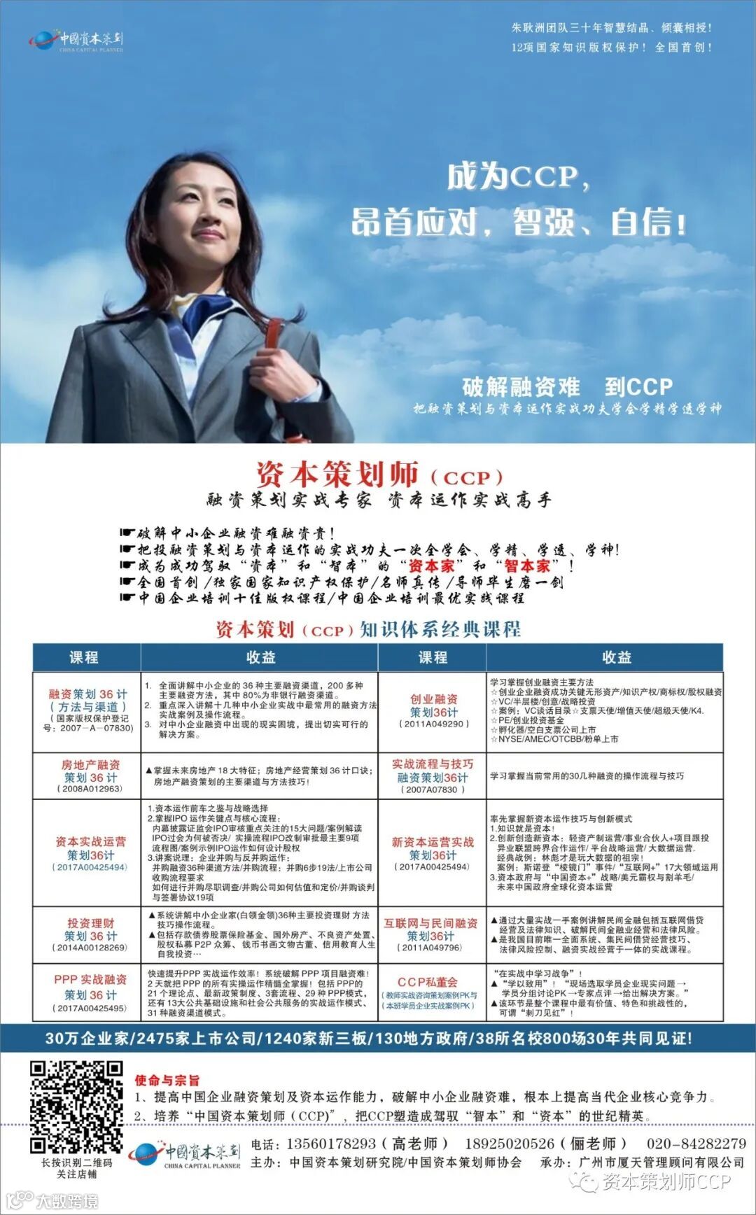 中国资本策划研究院院长、CCP创始人朱耿洲博士全程主讲。
