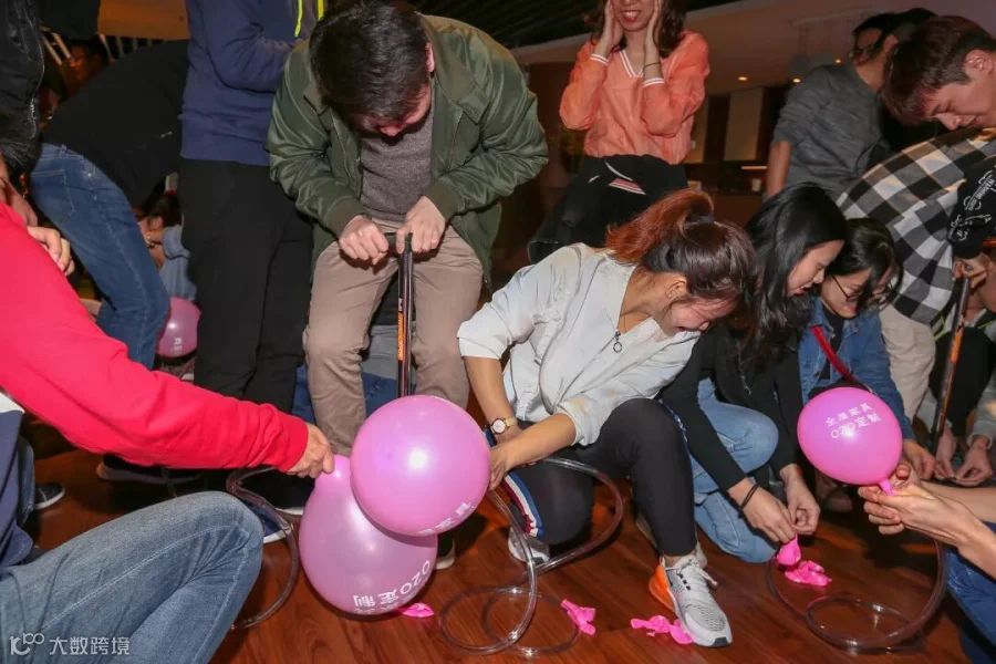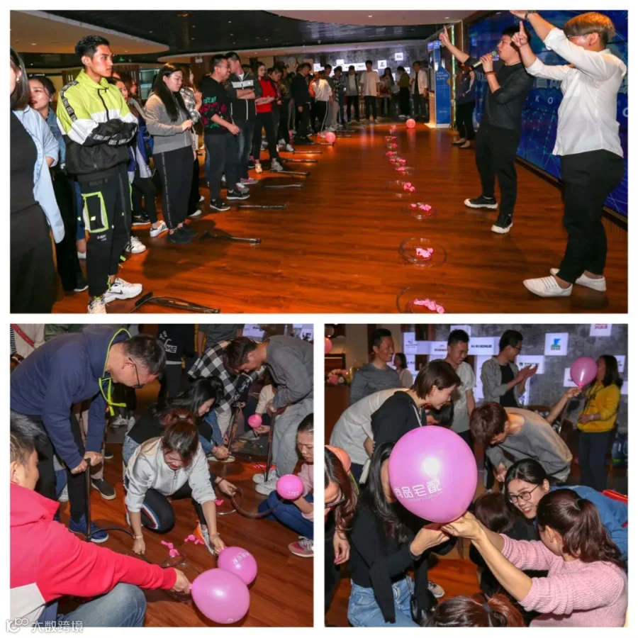 拿到道具大家进行了快速分工,有人接软管,有人捏气球口,有人打气,有人准备冲刺....这是一场与时间赛跑的游戏,为了赢得微妙的优势,大家使出了全身的力气。