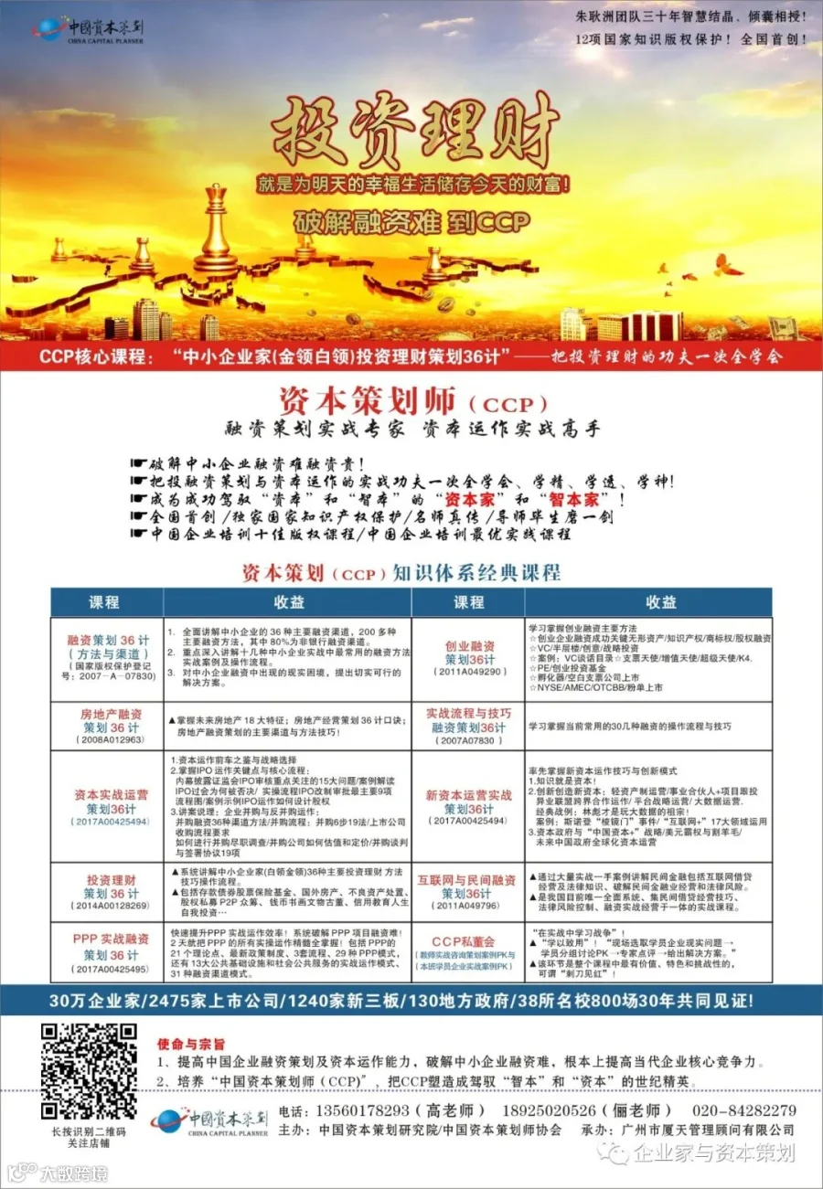 二是借助专业人士的力量——如“资本策划师(CCP)”,帮助解决融资难题。