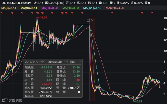 股价方面,在2018年11月也开始急转直下,3个月股价跌超80%。截至5月26日盘后,该股总市值为57.4亿元,目前股东户为1.3万户。