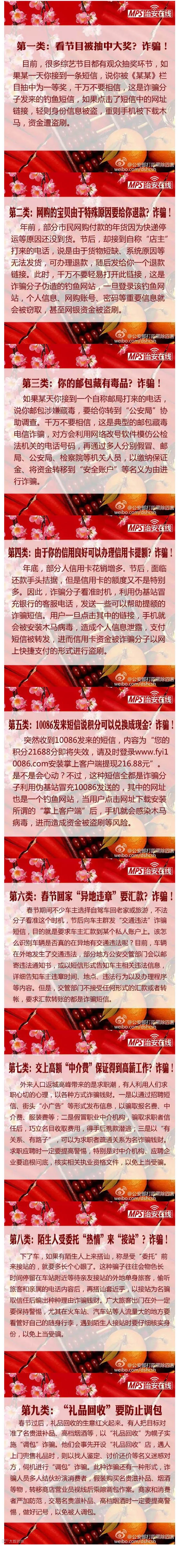 以上内容,统统都是诈骗!春节假期后出现的九种骗局有哪些?请看下图。