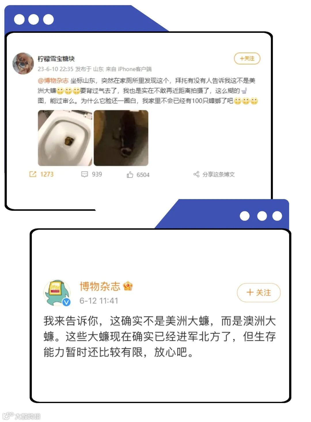 于是带着三分忐忑、四分恐惧和十分不敢置信,在微博上求证博物杂志:“拜托告诉我这不是美洲大蠊。”