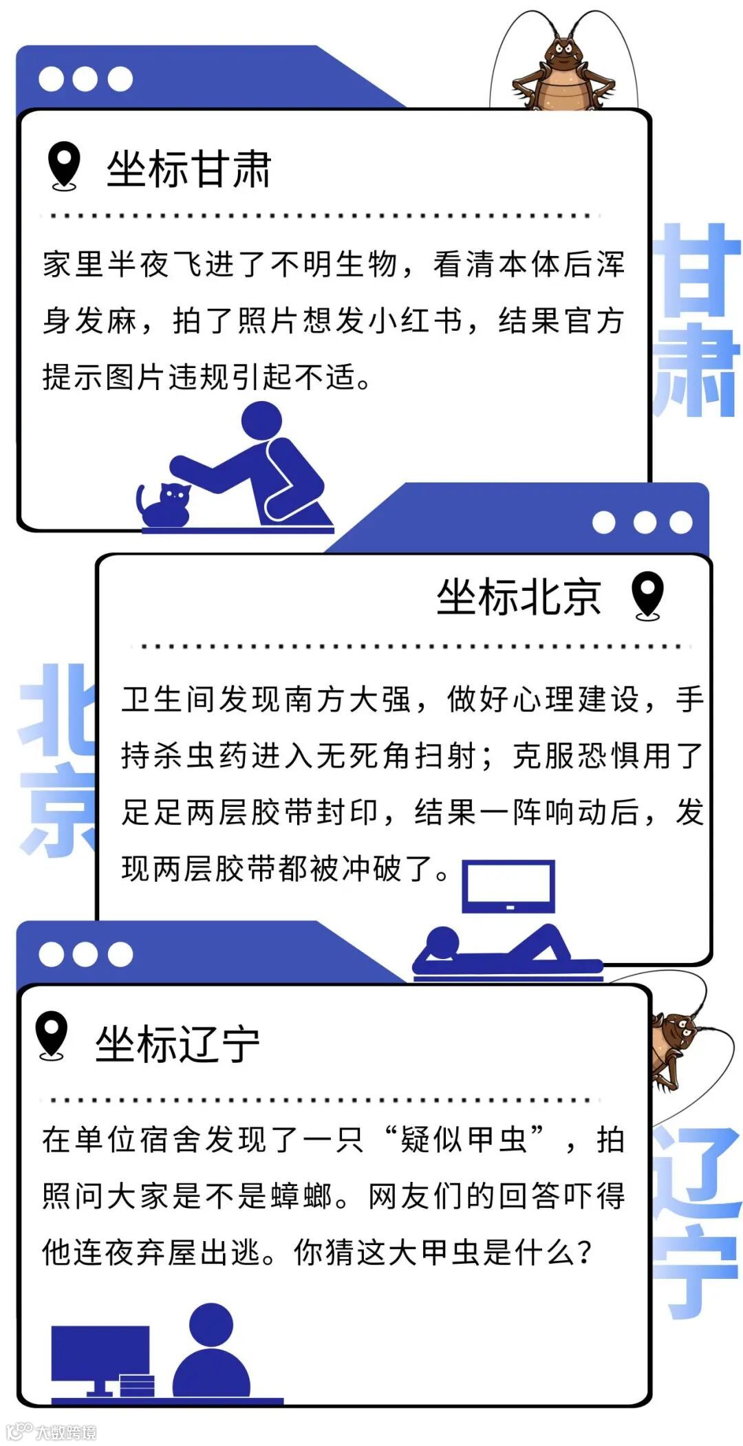 从华北到东北,从内蒙到甘肃,都陆续有人宣布或担忧自己解锁了飞天蟑螂。