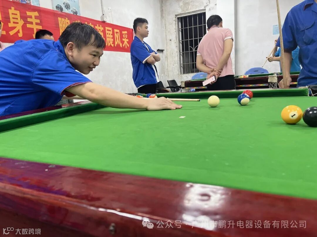 5月24日晚,鹏升电器展开了一场“台球竞技显身手,鹏升精英展风采”的台球比赛。本次台球比赛设置有:初赛与决赛,8球玩法(黑8台球)进行。