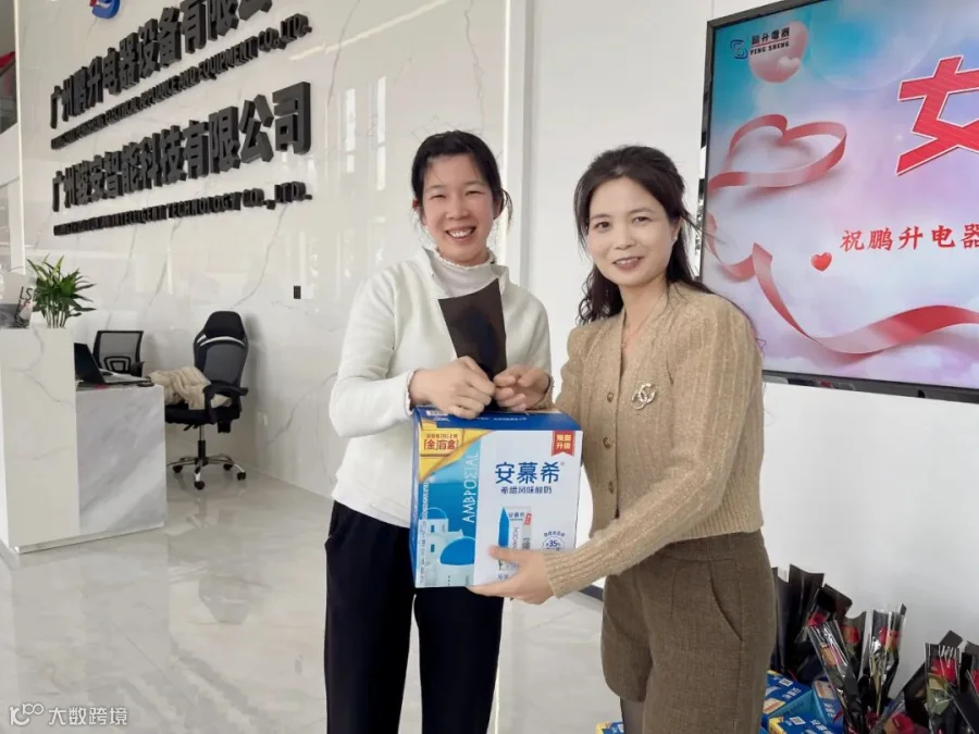 在“三八”国际妇女节到来之际,为传递对全体员工的关怀与节日祝福,广州市鹏升电器设备有限公司精心准备了节日福利。行政人事部经理与公司工会主席共同为员工发放了包含安慕希酸奶礼盒和鲜花在内的礼品。现场氛围温馨愉悦,一份份承载着心意的礼品,传递着公司对员工辛勤付出的感谢与对美好生活的祝愿。